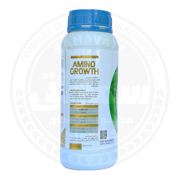 کود آمینو.گروس AMINO.GROWTH محصول اسید آمینه مایع حاوی ۱۶ نوع اسید آمینه ضروری از نوع آزاد می باشد. که با افزایش تولید کلروفیل در برگ ها و فرآیند فتوسنتز، تولید کربو هیدرات در گیاهان را افزایش داده. و همچنین این محصول با تسریع سنتز پروتئین و هورمون های گیاهی، رشد گیاه را به طور چشمگیری افزایش می دهد.